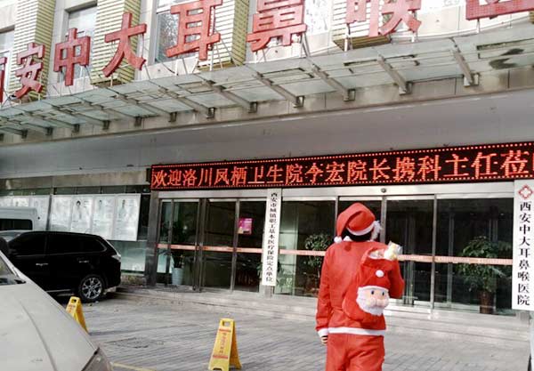 怀着满满的诚意与祝福,西安中大耳鼻喉医院希望通过圣诞老人送礼这一惊喜,让医院所有的住院患者,都能感受到节日的气氛,让他们即使因病痛不得不在医院度过节日,也能和所有其他人一样过节,甚至感觉更好,不留遗憾,